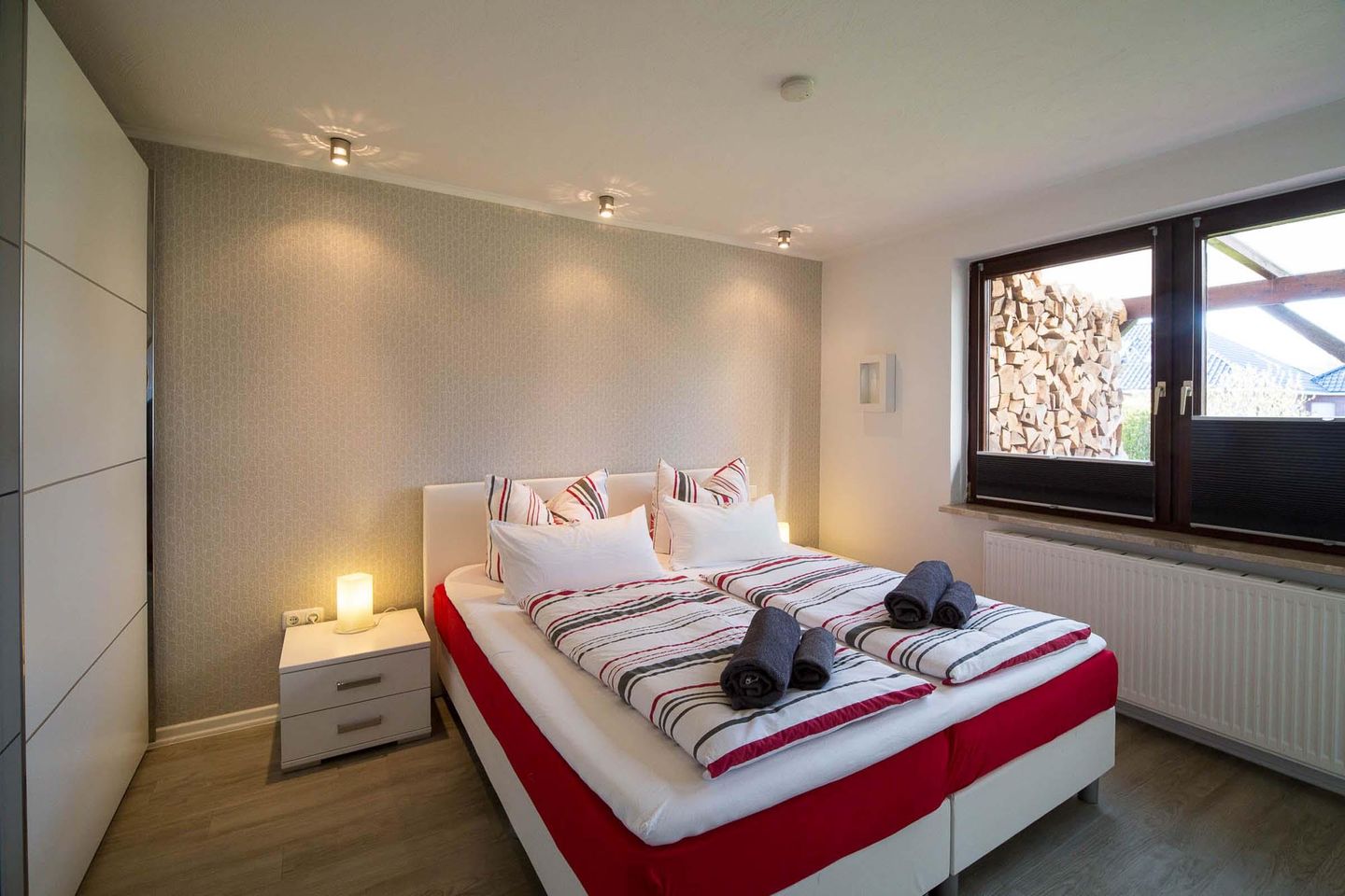 Im Anbau des Hauses Timpe befindet sich diese schöne Erdgeschosswohnung mit ca. 40 qm für max. 2 Personen. Der offene Wohnbereich vereint die Küche, den Essbereich und eine gemütliche Sitzecke. In die Küchenzeile integriert sind Geschirrspüler und Backofen. Das separate Schlafzimmer ist freundlich und modern eingerichtet und verfügt über ein Doppel-Boxspringbett (Topperauflage 180x200). Auch das Badezimmer ist schick gehalten und verfügt über eine begehbare Dusche. Die Wohnung verfügt über 2 Terrassen, davon ist eine überdacht. Der Garten des Hauses kann mitbenutzt werden.